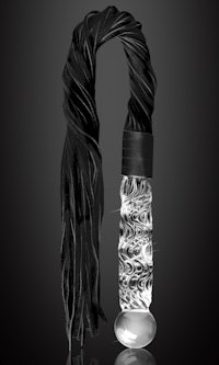 Elegant upscale and hand-crafted with amazing attention to detail this luxurious glass flogger will leave you breathless. Each hand-blown Icicle glass is sleek unique and made to play hard. The hypoallergenic glass is nonporous and body safe and when cared for properly is designed to last a lifetime. The glass Cat-O-Nine Tails features genuine bull leather tresses that are soft enough for begginer play but heavy enough to deliver a firm whack. The heavy-duty weighted glass handle is hand-blown and doubles as a glass dildo for vaginal and anal play. The beautiful textured swirls provide added stimulation and the glass handle can be heated or cooled for tempting temperature play.