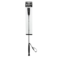 High quality, two-sided black leather paddle with a soft furry side for use as a body buffer then turn the paddle over for a different impact.