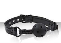Take control of your fantasies tonight with the Fetish Fantasy Breathable Ball gag. Designed for comfort the firm non toxic rubber ball has breathing holes for your willing submissive. The high quality leather strap measures 10 inches in length.