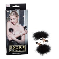These tweezer style nipple clamps adorn the chest with three graduated silver balls that dangle from the end. The adjustable clamps have a sliding ring that will allow you to modify the amount of pressure that is applied and are coated with vinyl for comfort and a better grip. These beaded clamps are ideal for beginner or advanced nipple play. With a little imagination they can also be used on the scrotum penis labia ears or any part of the body you desire...