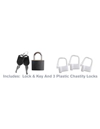 Put your lover on lockdown with the Hardcore Silicone Cock Blocker! Fasten the lock, hide the key, and make sure your partner keeps his cock where it belongs! This high-end chastity cage is made from our body-safe, phthalate-free Elite Silicone and is designed for comfortable long-term wear. The chastity device is lightweight, flexible, and breathable, but once the lock is applied, your subject cant get hard no matter how aroused they are! The Hardcore Silicone Cock Blocker features a sturdy stainless steel adjustable ring that wraps around your subjects entire package, leaving his shaft locked inside the breathable silicone sleeve. With unparalleled comfort, this ventilated silicone chastity cage is the ultimate chastity device for first-timers and serious fetish enthusiasts alike. Enjoy the thrill of locking your lover up, or relinquish control and hand over the keys! The silicone cage is easy to wash, body-safe, and super hygienic. The vent holes allow you to clean your subjects package while they still wear the cage, and the ring is made from high-grade stainless steel. The silicone sleeve has a small pee-hole to assist urination, and the entire device can be worn under clothing for amazing one-of-a-kind thrills! To install the silicone sleeve onto the metal ring, make sure the metal rings opening is facing upwards and slide both pairs of silicone loops onto each side of the ring. Once youve looped the silicone sleeve onto the steel ring, choose one of the 3 holes and install one of the locks.