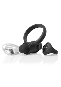 Stretchy true silicone perineum ring. The comfortable ring positions the vibe perfectly against the perineum or testicles and keeps it securely in place. Vooom rechargeable bullet has deep, rumbling 10 functions that wirelessly syncs with remote-control ring or works on its own. The remote is disguised as a ring! Discreet push-button remote control works up to 50 feet away! Made of stretchy silicone to fit almost any size finger. Includes: USB charge cable CR-1620 battery for ring/remote Rechargeable 60+ minute vibe time Waterproof Phthalate & latex free